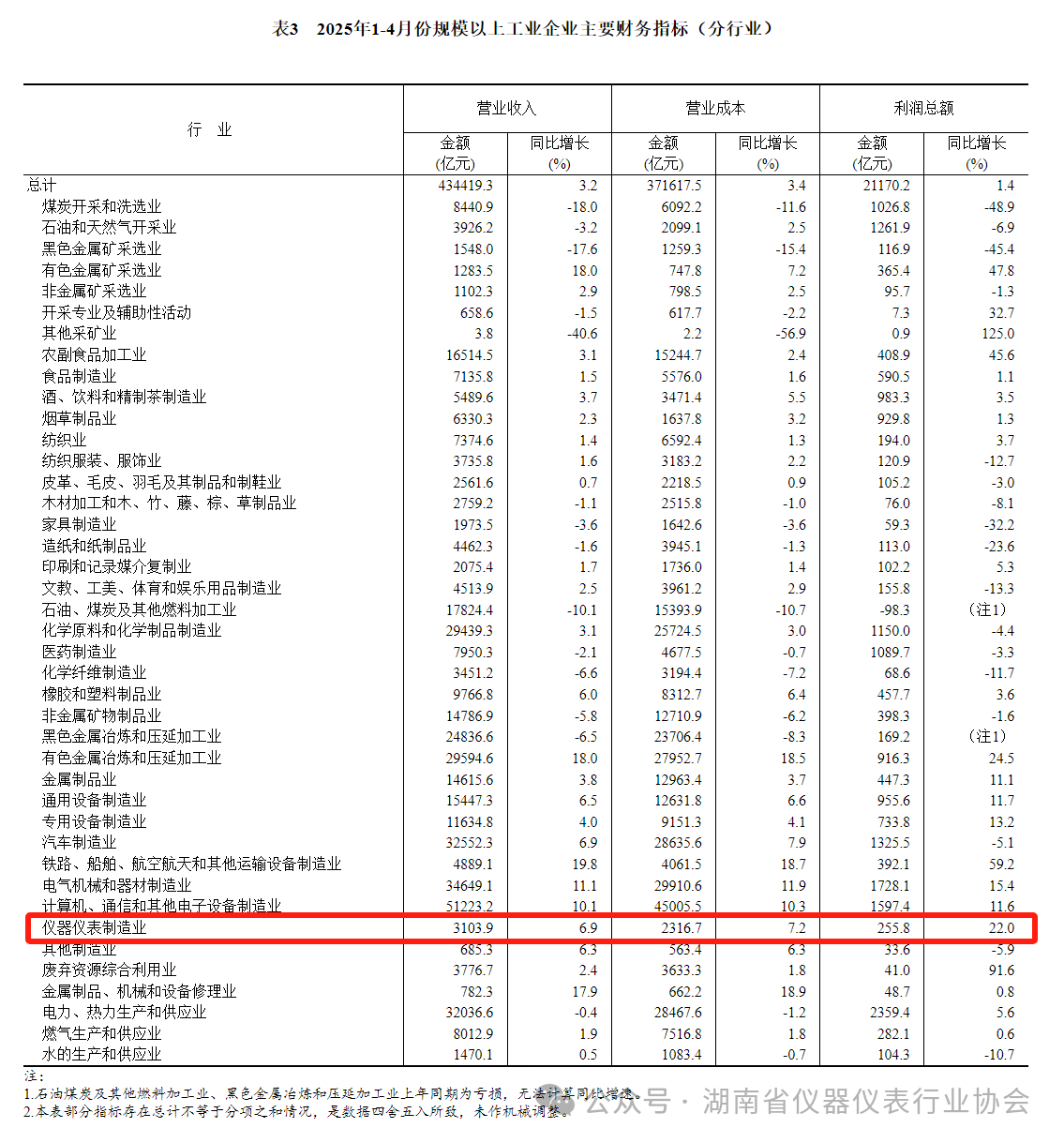 5月27日,国家统计局公布了2025年1-4月份全国规模以上工业企业实现利润总额增长状况。其中,1-4月份全国规模以上仪器仪表制造企业实现利润总额255.8亿元,同比增长22.0%。