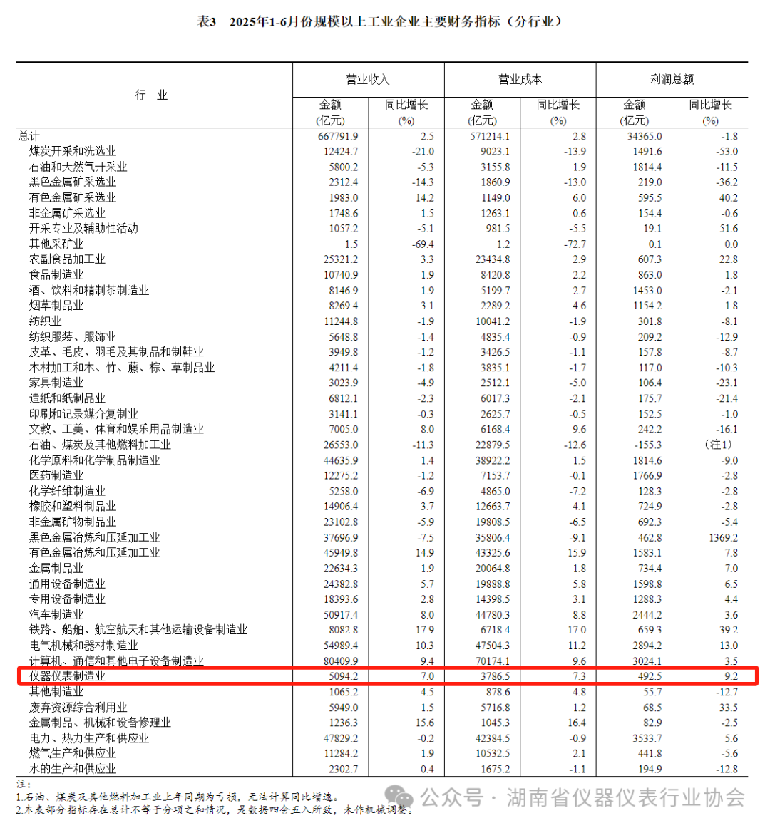 7月27日,国家统计局公布了2025年1-6月份全国规模以上工业企业实现利润总额情况。1—6月份,全国规模以上工业企业实现利润总额34365.0亿元,同比下降1.8%。其中,1-6月份全国规模以上仪器仪表制造企业实现利润总额492.5亿元,同比增长9.2%。